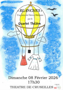 La troupe du Quartet Théâtre aura le plaisir de se produire avec la pièce « BLANCHES » de Fabrice Melquiot au Théâtre de Cruseilles le 8 Février à 17h30.